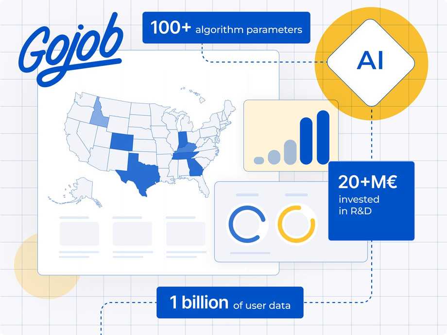 Gojob leverages the latest generation of AI technology to provide powerful, effective staffing solutions. Our team of over 30+ dedicated data scientists and engineers have been developing our AI Platform for nearly a decade. We are constantly improving it to continuously outperform ourselves and provide even better results for your business.